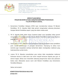 Kenyataan Media Penafian Arahan Ketua Kementerian Pendidikan Malaysia Facebook