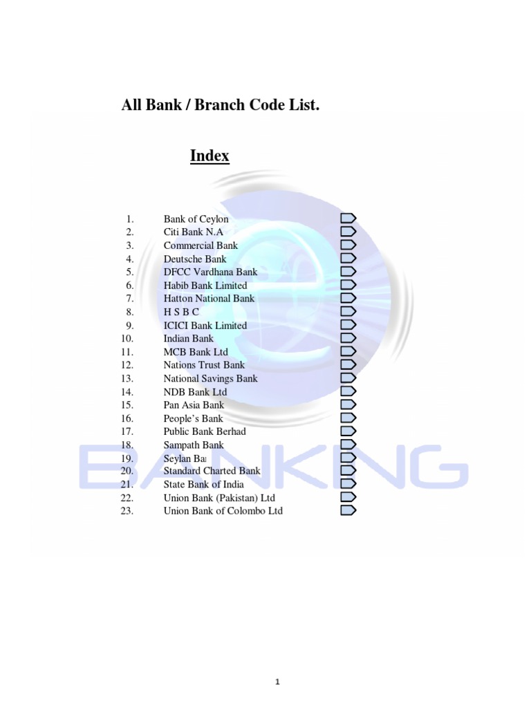 All Bank Branch Codes Companies Economies