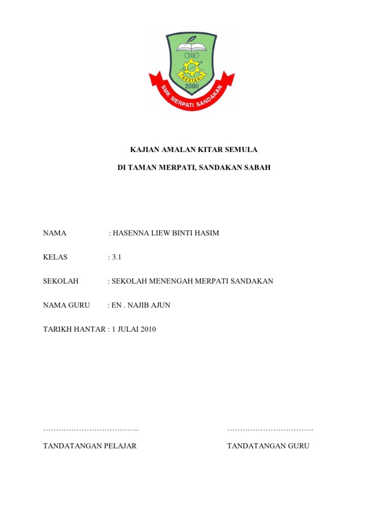 Amalan Kitar Semula 01 Kalangan Pelajar Kitar Semula Di Kalangan Atiqah Bint Zakariah Zakaria Program Sains Sekitaran Senarai Rajah No Ladual Muka Surat 2 1 Sejarah Sisa Pepejal Pdf Document